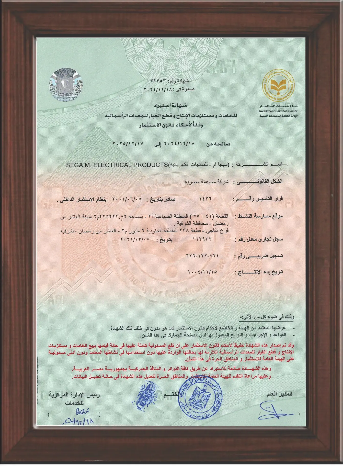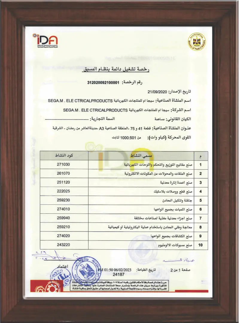 Sega M is proudly certified as a local manufacturer, contributing to national industry development while delivering products that meet international standards.