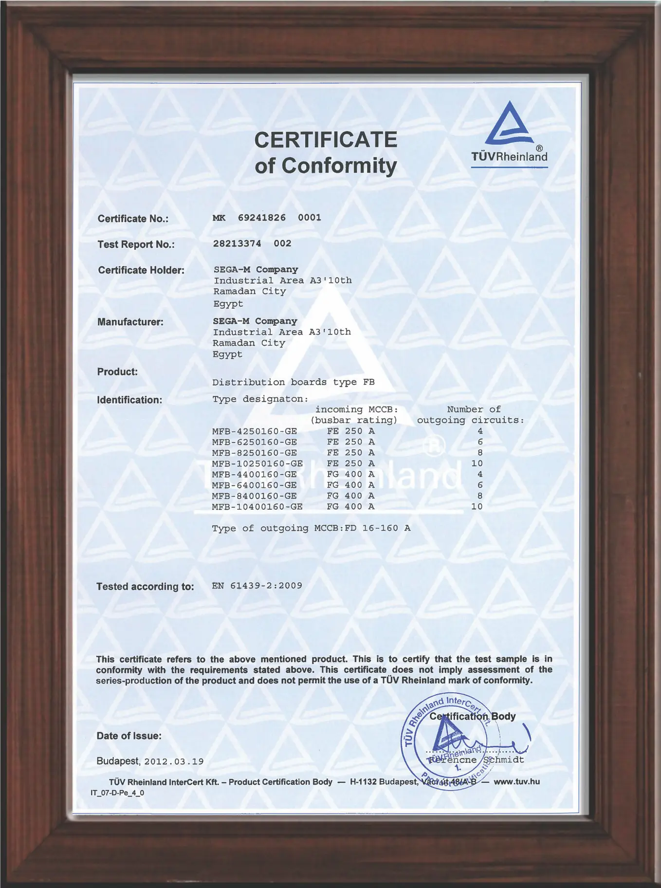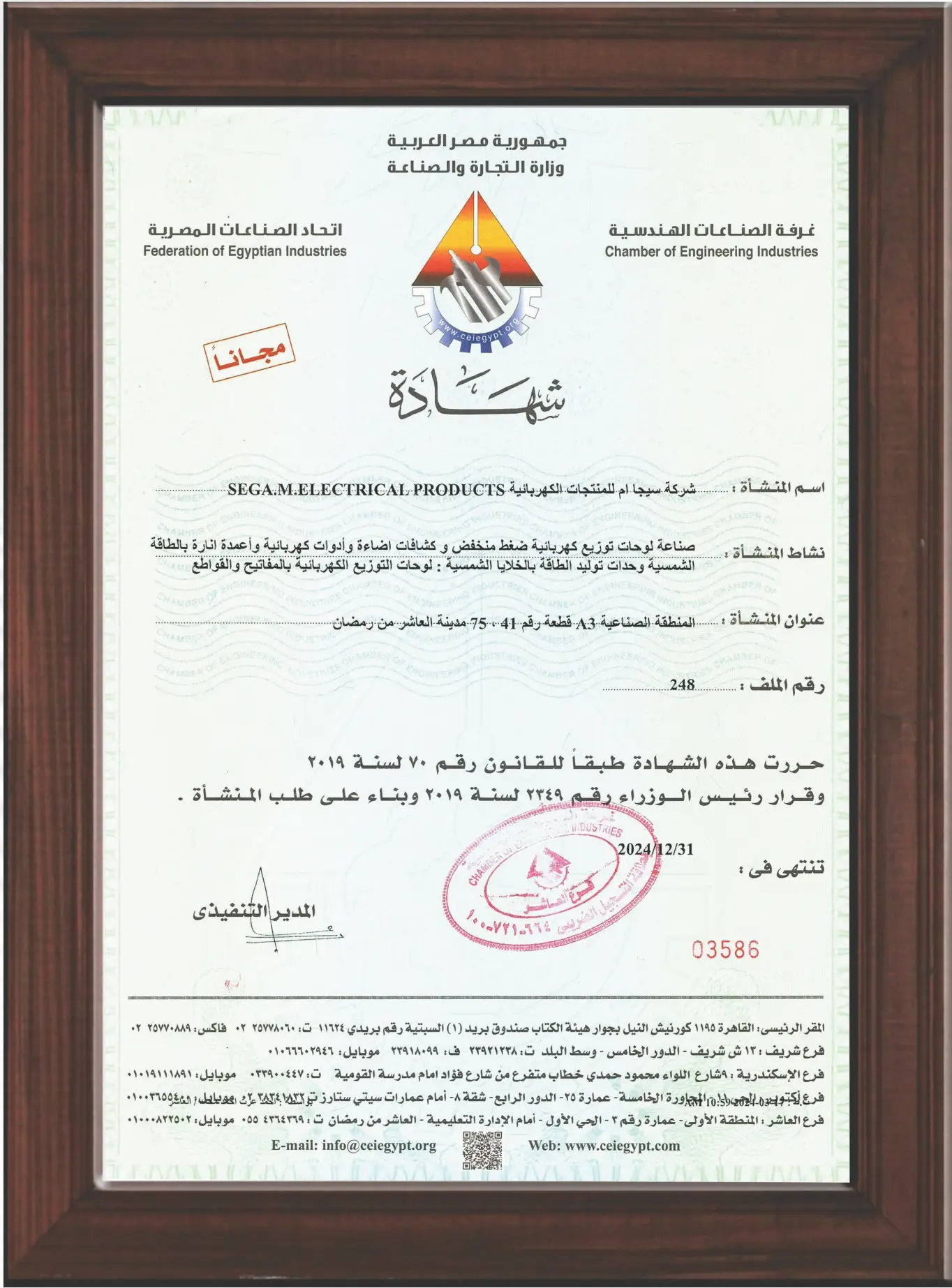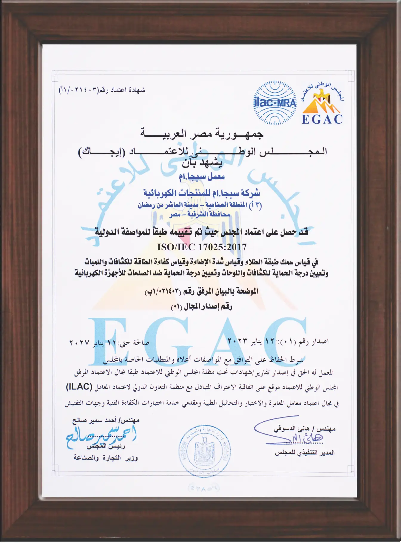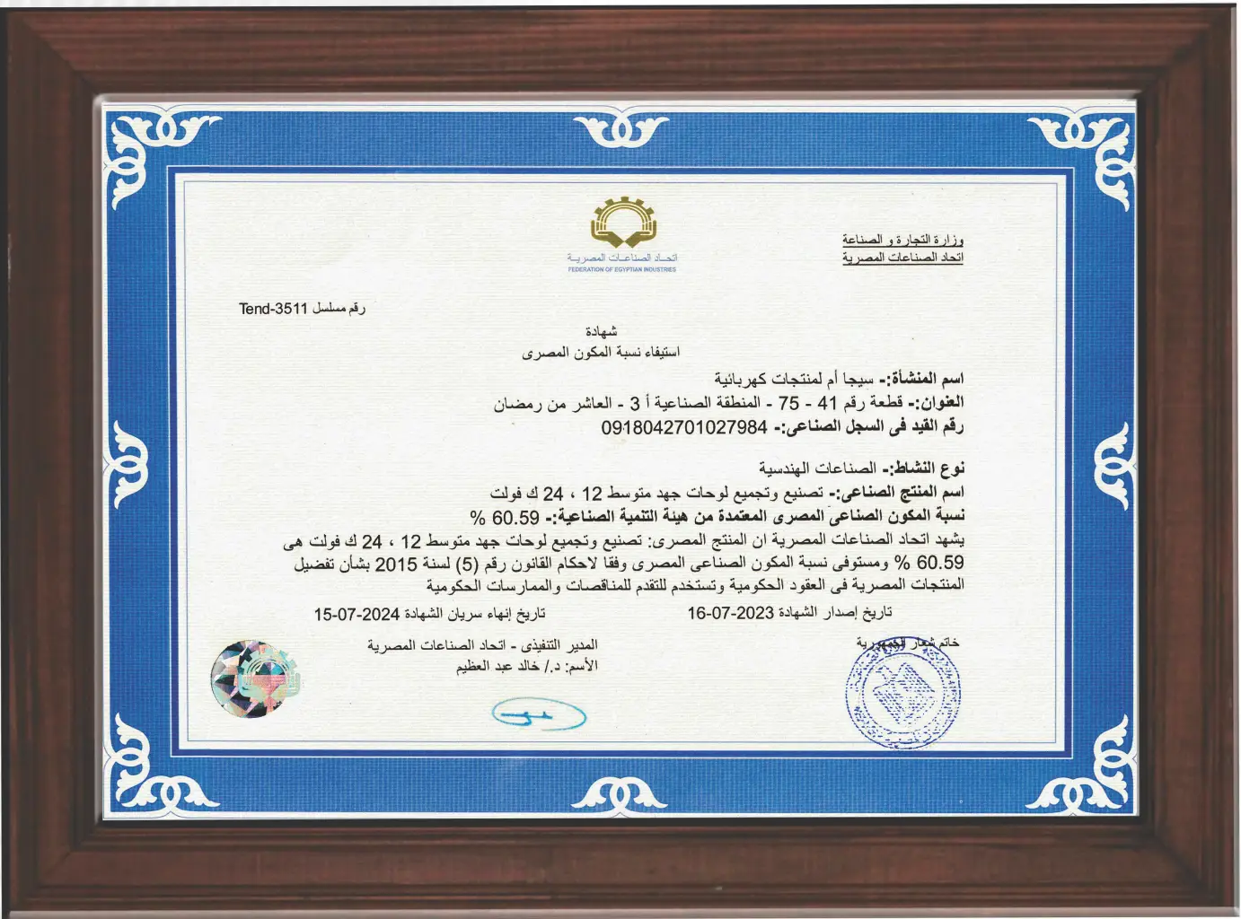 Egyptian Component Compliance Certification