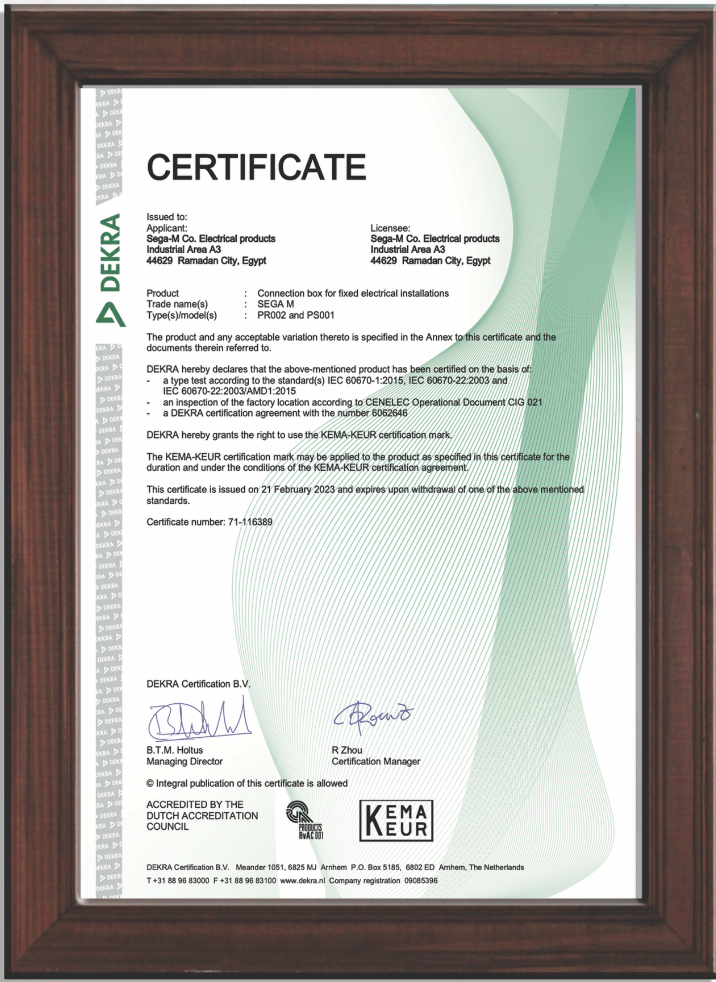 Sega M is committed to delivering certified electrical and lighting solutions backed by internationally recognized standards and approvals.