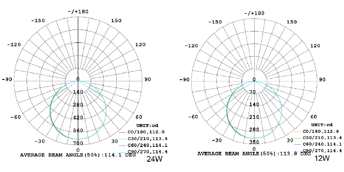 LED Technology High-efficiency SMD LEDs across 12W and 24W options delivering 100 lm/W with a wide 113°–114° beam angle for broad, even room coverage. CRI ≥ 82 in three selectable color temperatures suits every lighting brief from warm hospitality to crisp commercial white.