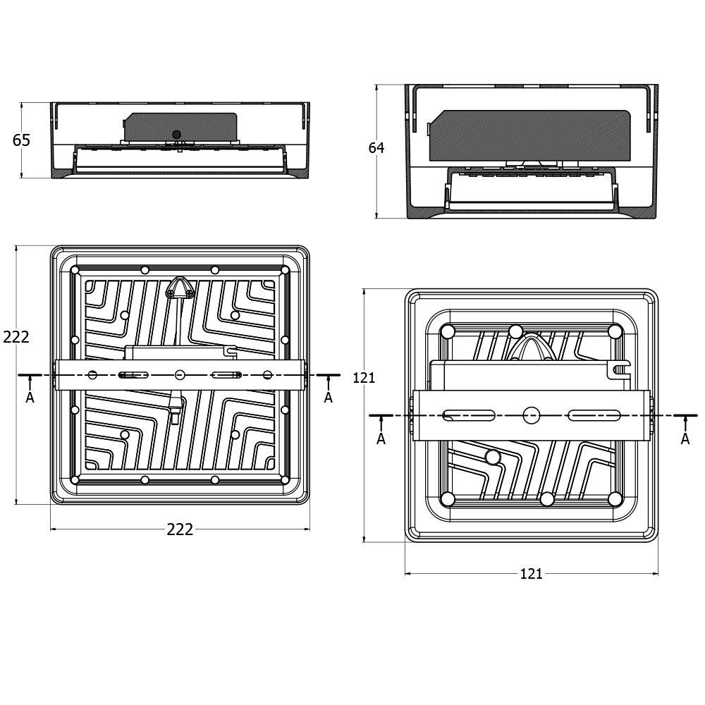 Body & Construction Die-cast aluminum ring, electrostatically coated after Phospho-Chromatation for superior durability and heat dissipation. Available in two rectangular surface formats, both featuring an IP54-rated front face that provides reliable protection against dust and moisture in everyday and demanding indoor environments.